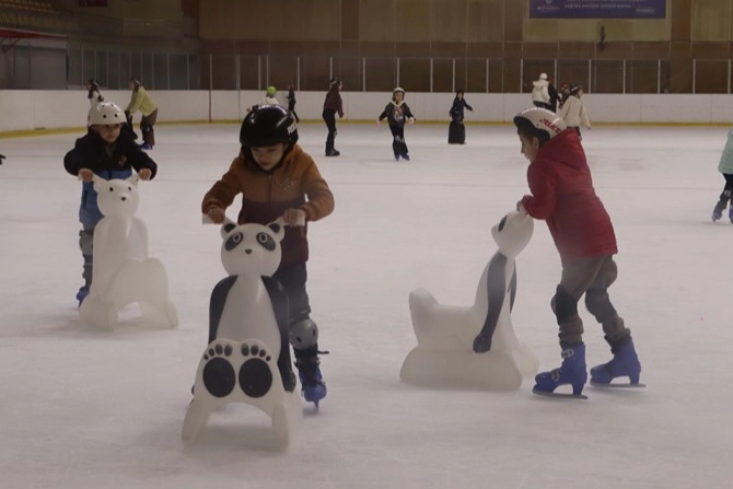 İstanbul'da Maltepeli çocuklar buz pistinde