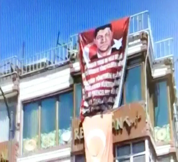 Serbest kalan Berces Kaya, bu kez yıkılan terasına 15 Temmuz`un kahramanı astsubay Ömer Halisdemir`in fotoğrafının bulunduğu bir pankarta; "Bu binanın yıkımı bu hale gelmesi FETÖ`cü belediye yöneticilerinin eseridir. Bu şehrin yönetimini ne zaman FETÖ`cülerden kurtaracaksınız? Baskılara, işkencelere, sömürülere halkın tahammülü kalmadı. Sayın cumhurbaşkanımız şehitlerimizin kemikleri sızlıyor" yazarak astı.