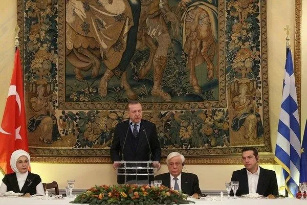 Yunanistan`ın misafirperverliği için şahsı, eşi Emine Erdoğan ve heyeti adına kalbi şükranlarını sunan Erdoğan, "Ben de afiyet olsun diyorum." sözleriyle konuşmasını bitirdi.