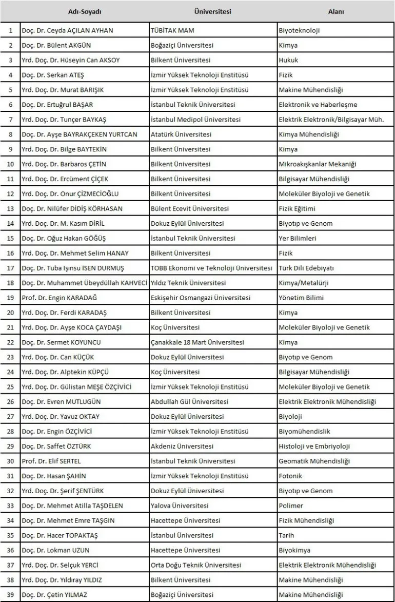 Ülkemizin her köşesindeki bilim insanlarımızı bu listede görmekten memnuniyet duyuyorum.