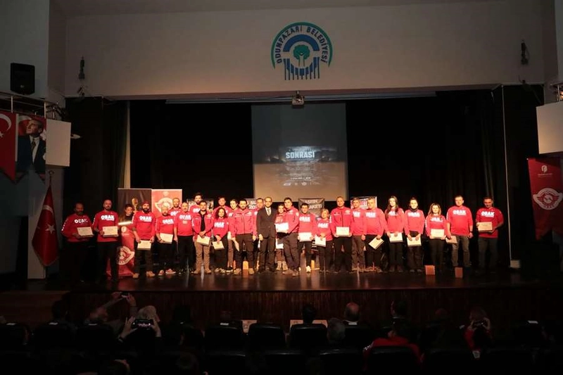 Programda söz alan OBAK Ekip Lideri Ercan Temel ile ekip lider yardımcısı Oktay Demirel, doğal afetlerle mücadelede sahada yaşadıkları deneyimleri ve 6 Şubat depremlerine dair anılarını paylaştı. Anlatılanlar, salonda duygusal anlar yaşanmasına neden oldu.