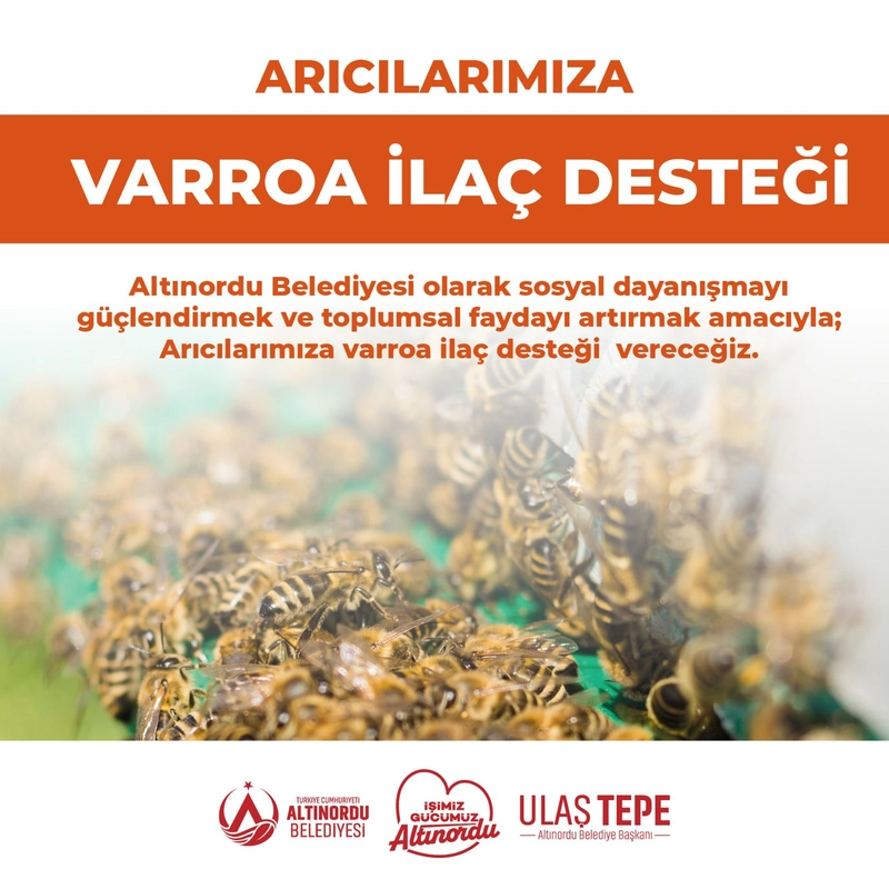 Kent sınırları içinde Tarım ve Orman Bakanlığı sistemine kayıtlı arıcılara varroa ilacı desteği sağlamak üzere, Ordu Arı Yetiştiricileri Birliği ile protokol imzalanması için Altınordu Belediye Meclisi, Belediye Başkanı Ulaş Tepe’ye yetki verdi. Hayata geçirilecek destekle hem arı sağlığının korunması hem de bal üretiminde verimliliğin artırılması hedefleniyor.