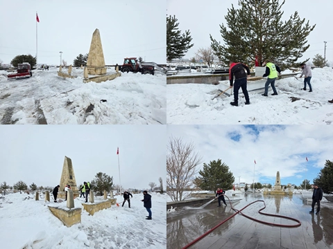 Kar yığınlarından tamamen arındırılan alanda son olarak yıkama işlemleri yapıldı. Çalışma, anma gününe hazırlık amacı taşıyor.
