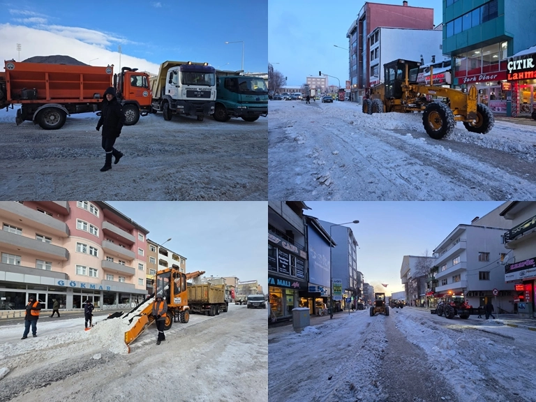 Ardahan Belediyesi ekipleri, yoğun kar yağışı sonrası ana arterlerden mahalle içlerine kadar temizlik ve tuzlama çalışmalarını aralıksız sürdürüyor.