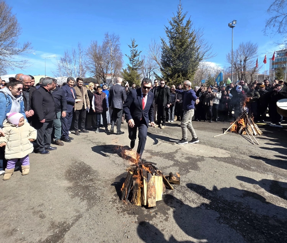 Ardahan'da düzenlenen Nevruz etkinliğinde protokol üyeleri demir dövüp yumurta tokuşturdu. Ateşin yakılmasının ardından katılımcılar üzerinden atlayıp halay çekti.