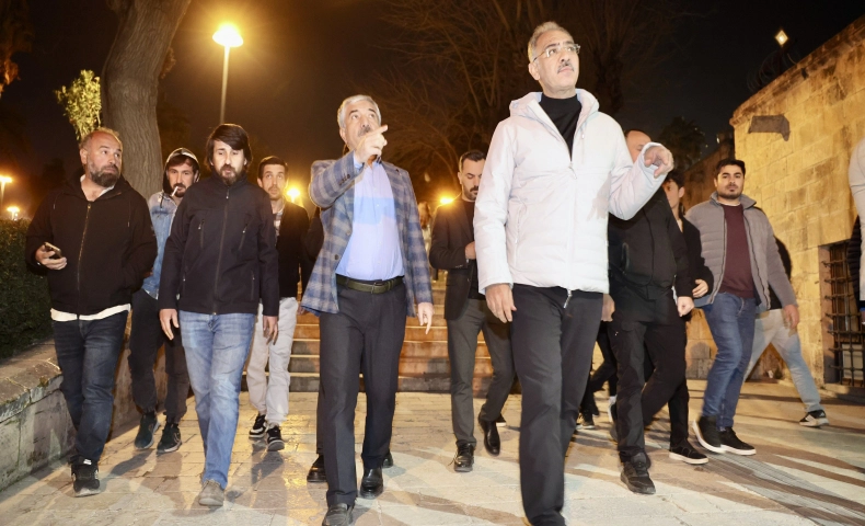 Eyyübiye Belediye Başkanı Mehmet Kuş, Başkan Yardımcısı Necmeddin Sağlam ve yüklenici firma yetkilileriyle birlikte, Halilürrahman Gölü ve Hz. İbrahim Peygamber makamının içerisinde yer aldığı Balıklıgöl Platosu’nda devam eden aydınlatma çalışmalarını inceledi.