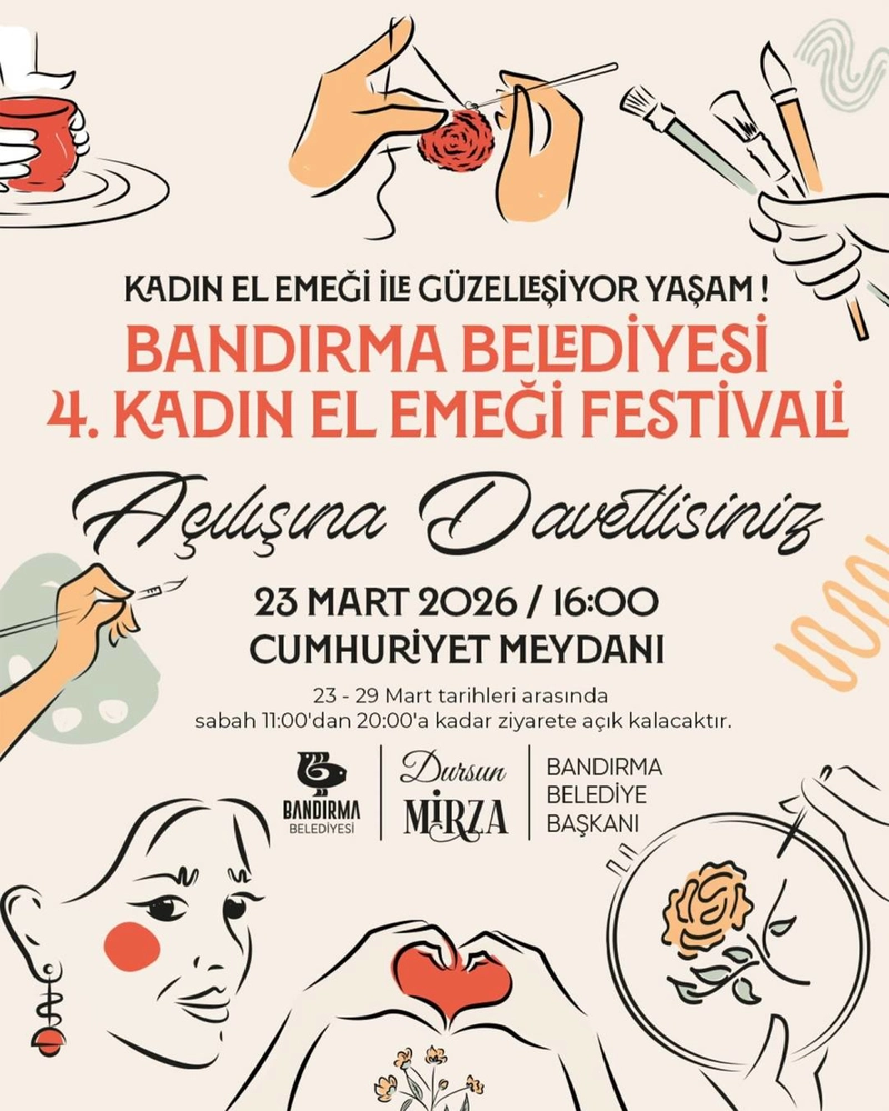 Bandırma Belediyesi tarafından düzenlenen 4. Kadın El Emeği Festivali, 23 Mart'ta Cumhuriyet Meydanı'nda açılıyor. Festival, kadın üreticilerin el emeği ürünlerini bir hafta boyunca sergileyecek.