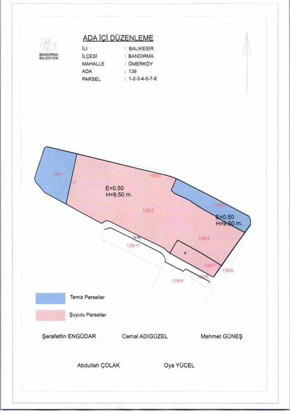 Bandırma Belediyesi Encümeni, 18 Şubat 2026 tarihli ve 169 sayılı kararı ile Ömerli Mahallesi, 139 ada, 1, 2, 3, 4, 5, 7 ve 8 numaralı parsellere ait ada içi düzenlemesinin onaylanmasına karar verdi.