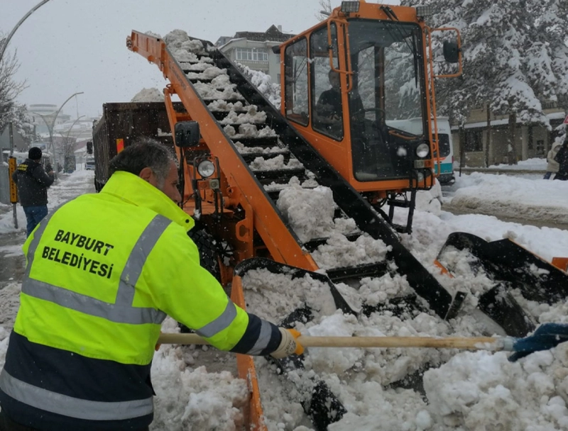 Bayburt'ta gece saatlerinde başlayan kar yağışı etkisini gösterirken, Bayburt Belediyesi Karla Mücadele ekipleri sahaya indi.