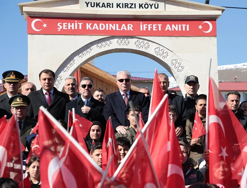 Etkinlikler, Yukarı Kırzı Köyü’ndeki Şehit Kadınlar İffet Anıtı’nda devam etti. 1916-1918 Ermeni mezalimi sırasında, namuslarını korumak için çocuklarıyla birlikte kuyulara atlayarak şehit olan kadınların anısına yapılan anıt, programın merkezindeydi.
