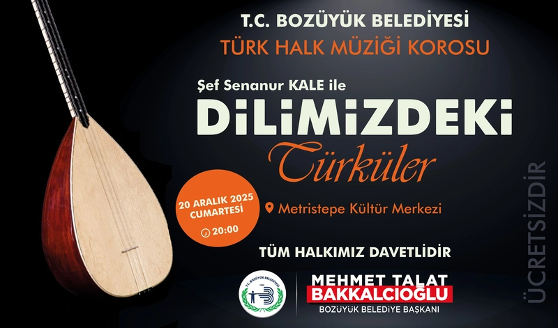 Bozüyük Belediyesi Türk Halk Müziği Korosu, "Dilimizdeki Türküler" adlı konser programını dinleyicilerle buluşturacak. Konsere tüm halk davetlidir.