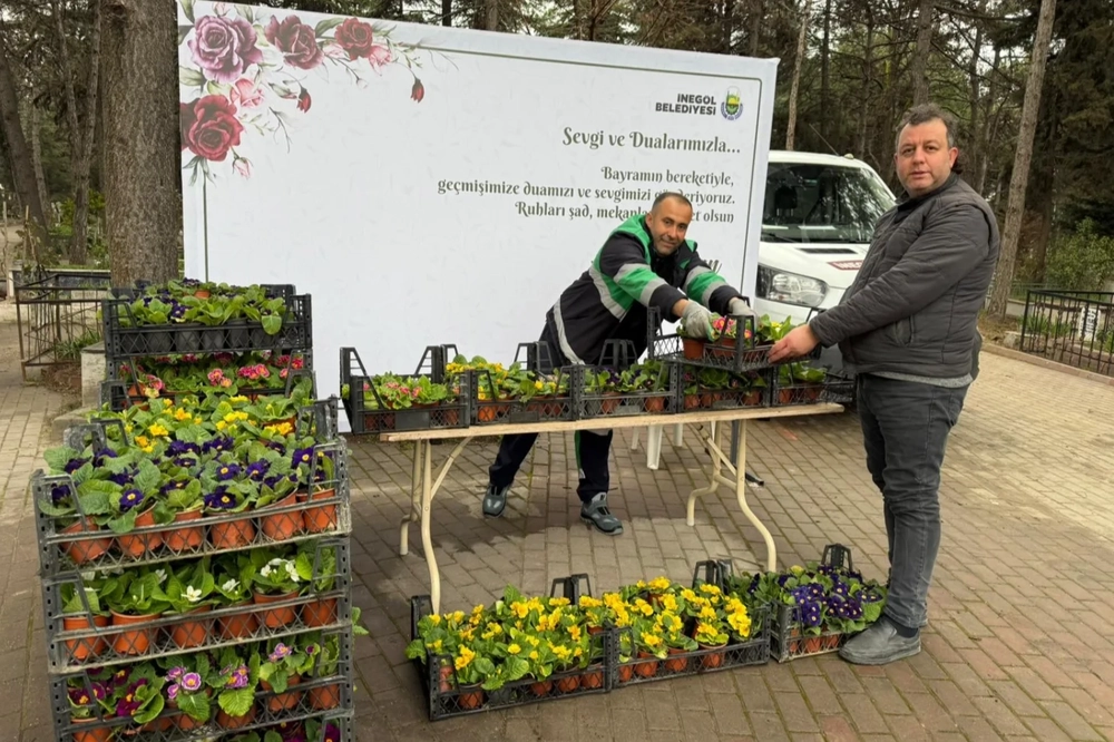 İnegöl Belediyesi Park Bahçeler Müdürlüğü ile Defin Hizmetleri Müdürlüğü’nün ortak çalışması kapsamında; İstanbullu Hasan, Kavaklaraltı, Hastane, Orhaniye, Mahmudiye 1 ve 2 ile Hamzabeyli Sadık Ağa Kent Mezarlığı’nda toplam 9 bin çiçek dağıtıldı. Mezarlıkları ziyaret eden vatandaşlar, aldıkları çiçekleri yakınlarının kabirlerine dikerek alanları adeta birer çiçek bahçesine dönüştürdü.