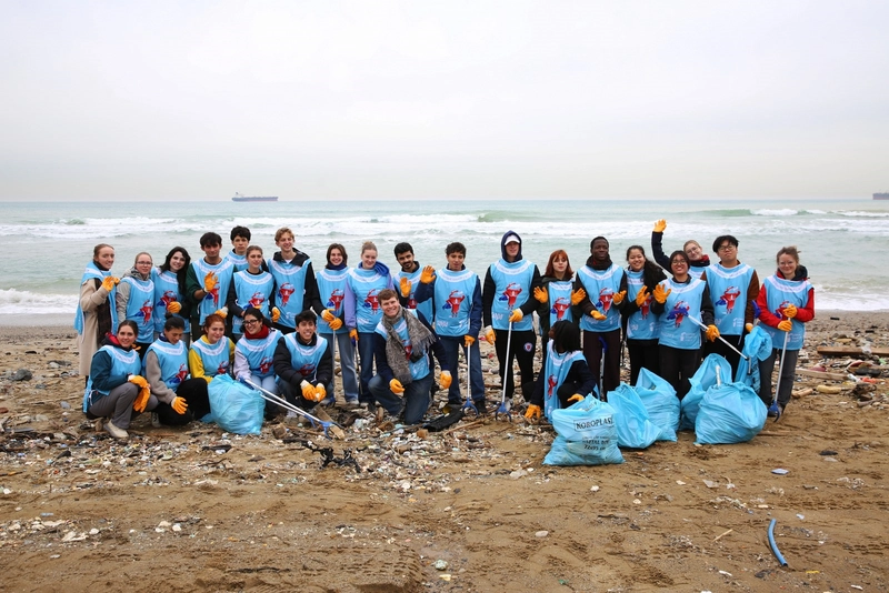 Dalgalarla birlikte sahile vuran ve çevre kirliliğine neden olan atıklar, Baret Scholars öğrenci grubu tarafından titizlikle toplandı. Türkiye’yi ziyaret eden ve farklı ülkelerden oluşan 35 kişilik grup, Çiftalan Plajı boyunca biriken çöpleri el birliğiyle temizledi.