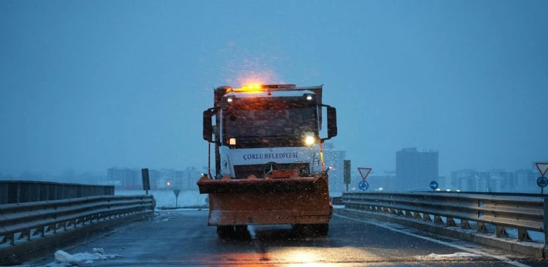 Kış şartlarıyla mücadele kapsamında teknolojik donanımlarını sahaya süren Çorlu Belediyesi, 2 adet kar püskürtme aracı ve çok sayıda iş makinesiyle yolları açık tuttu. Çalışmalar kapsamında kent genelinde 70 ton tuz kullanılarak buzlanmanın önüne geçildi.