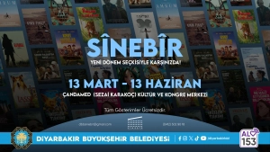 Diyarbakır Büyükşehir Belediyesi Sinema Birimi Sînebîr’in düzenlediği “Haftasonu Sineması” programı yeni dönem seçkisiyle başlıyor. 13 Mart–13 Haziran 2026 tarihleri arasında her hafta sonu gerçekleştirilecek ücretsiz gösterimlerde toplam 19 film sinemaseverlerle buluşacak.
