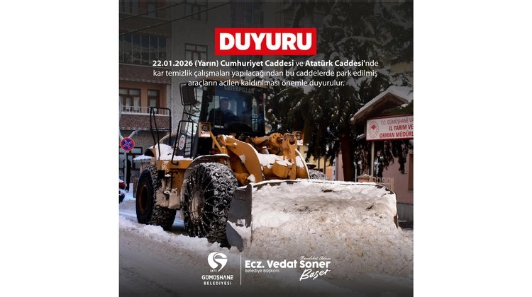 Gümüşhane Belediyesi, 21 Ocak 2026 tarihli bir duyuru yayınladı.