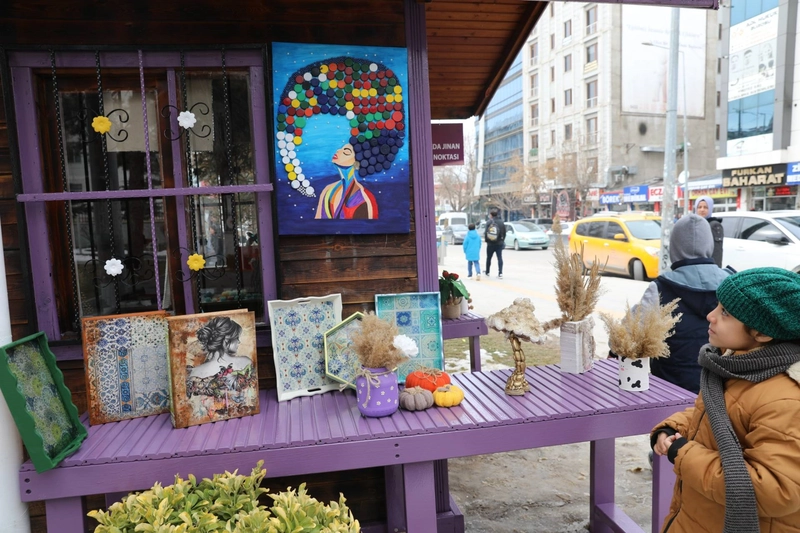 Sergi noktasında, geri dönüşüm malzemelerinden yeniden değerlendirilerek üretilen ürünler de yer alıyor. Kadınların bu çalışmaları, doğaya katkı sağlamanın yanı sıra halktan yoğun ilgi görüyor. Açılan sergi alanı, kadın emeğinin görünürlüğünü artırmayı hedefliyor.