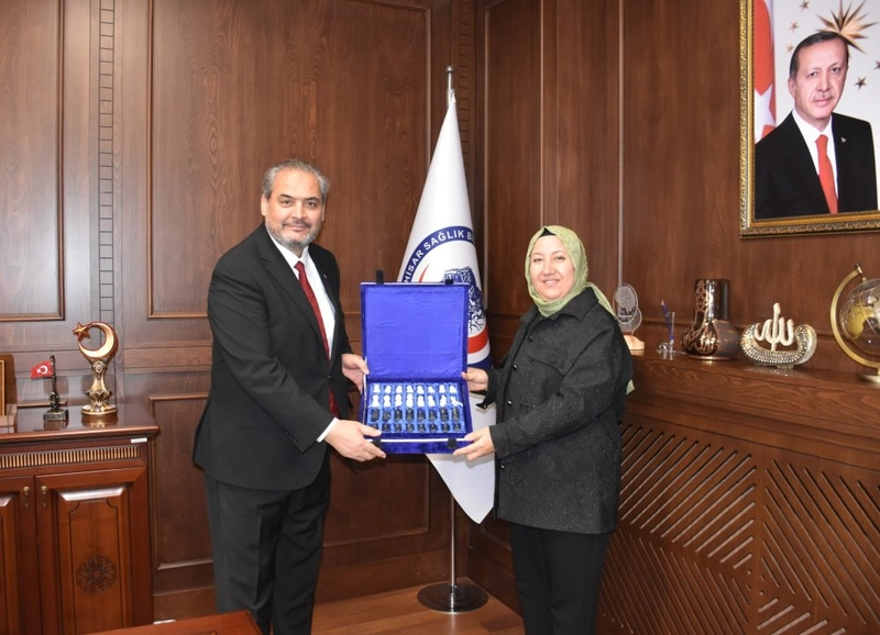 İscehisar Belediye Başkanı Seyhan Kılınçarslan, Afyonkarahisar Sağlık Bilimleri Üniversitesi (AFSÜ) Rektörü Prof. Dr. Adem Aslan'ı makamında ziyaret etti.