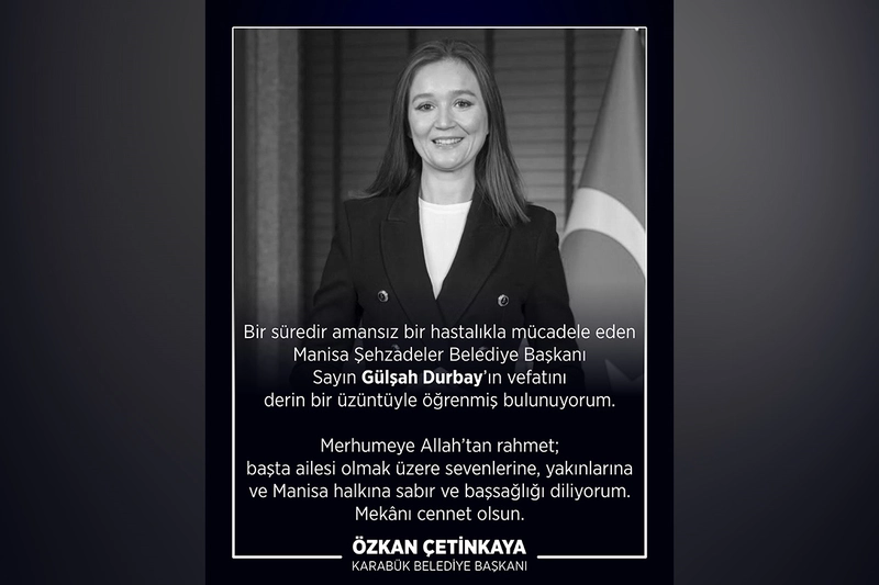 Karabük Belediye Başkanı Özkan Çetinkaya, sosyal medya hesabı üzerinden bir açıklama yayımladı. Çetinkaya, açıklamasında Manisa Şehzadeler Belediye Başkanı Gülşah Durbay'ın vefat haberini üzüntüyle öğrendiğini belirtti.