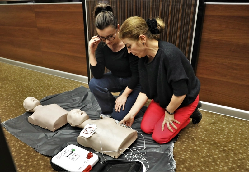 Program kapsamında; kalp durması halinde uygulanması gereken kalp masajı teknikleri ve otomatik eksternal defibrilatör (şok cihazı) kullanımı uygulamalı olarak anlatıldı. Ayrıca soluk borusuna yabancı cisim kaçması durumunda yapılması gereken müdahaleler detaylandırıldı.