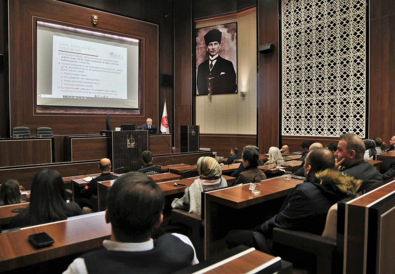 Keçiören Belediyesi'nde birim müdürleri ve sorumlularına yönelik 'Disiplin Uygulamaları ve Belediyelerde Yetki Devri' konulu eğitim düzenlendi. Eğitimde, kamu yönetimindeki hukuki süreçler ve etkin yetki devri uygulamaları ele alı