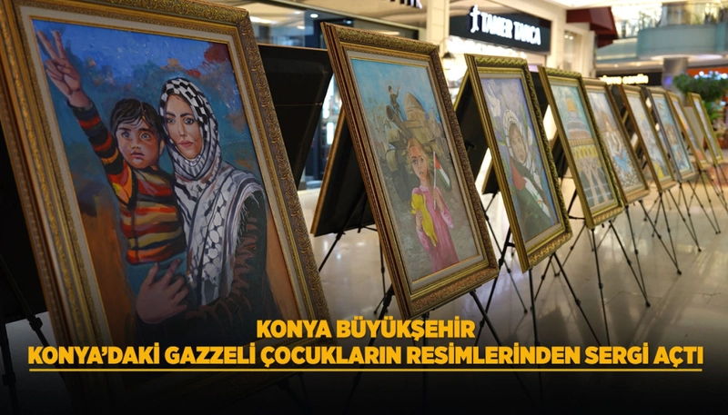 Konya Büyükşehir Belediyesi, kentte misafir edilen Filistinli çocukların çizdiği 20 eserden oluşan bir sergi düzenledi. Sergi, çocukların yaşadıklarını sanat yoluyla ifade ettiği çalışmaları vatandaşlarla buluşturdu.