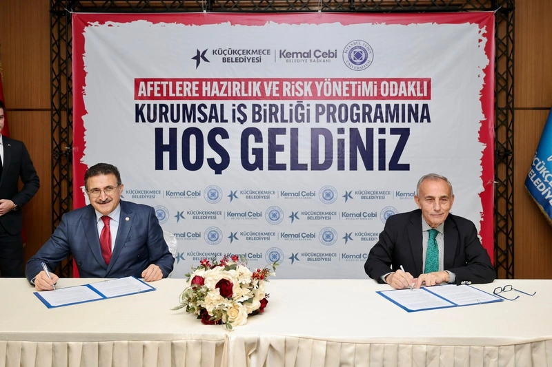 Küçükçekmece Belediyesi'nin ev sahipliğinde 'Afetlere Hazırlık ve Risk Yönetimi Odaklı Kurumsal İş Birliği' programı düzenlendi. Belediye binasında gerçekleştirilen programın ardından Küçükçekmece Belediye Başkanı Kemal Çebi ile İstanbul Aydın Üniversitesi Rektörü Prof. Dr. İbrahim Hakkı Aydın, iş birliği protokolünü imzaladı.