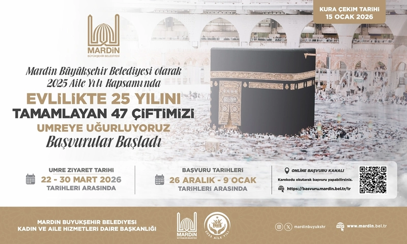 Mardin Büyükşehir Belediyesi'nin bu yılı Aile Yılı ilan etmesinin ardından hayata geçirilen projelerden biri olan Umre programı, şehirdeki ailelere yönelik sosyal ve kültürel faaliyetler arasında yer alıyor. Belediye, bu tür organizasyonlarla toplumsal dayanışmayı artırmayı amaçlıyor.