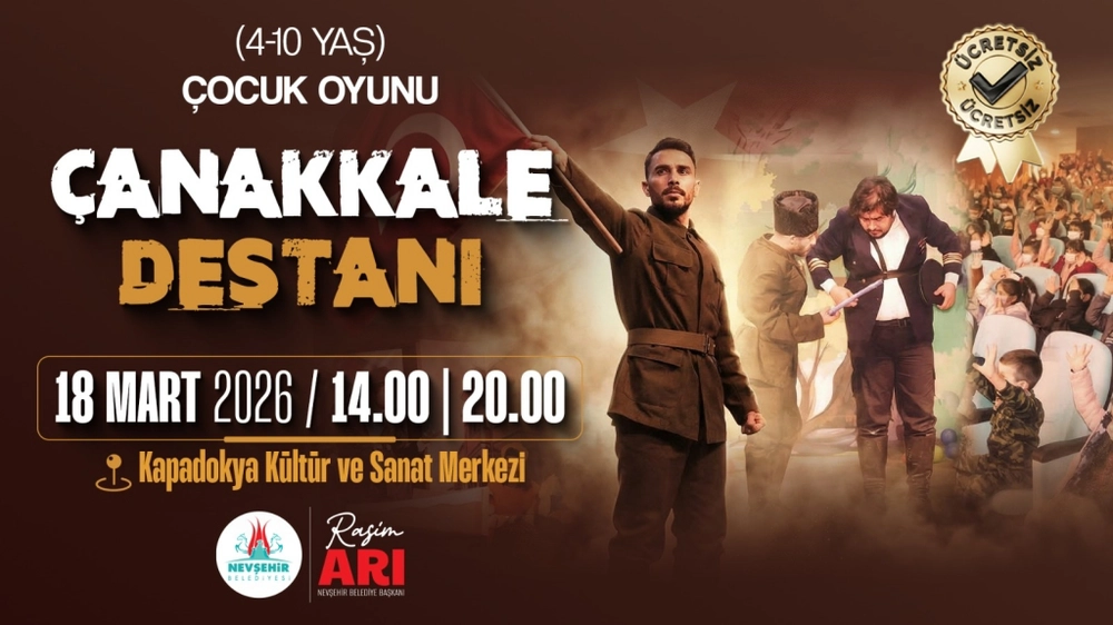Nevşehir Belediyesi, Çanakkale Zaferi'nin 111. yıl dönümü kapsamında 4-10 yaş arası çocuklara yönelik eğitici bir tiyatro oyunu düzenleyecek. Oyun, Kapadokya Kültür ve Sanat Merkezi'nde iki seansta izlenebilecek.