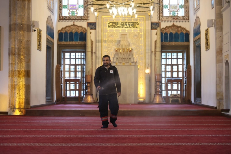 Ekipler, tulumbalar yardımıyla tüm camilerin iç mekânlarına gül suyu sıktı. Çalışmalar kapsamında yaklaşık 200 kilogram gül suyu kullanıldığı bildirildi.