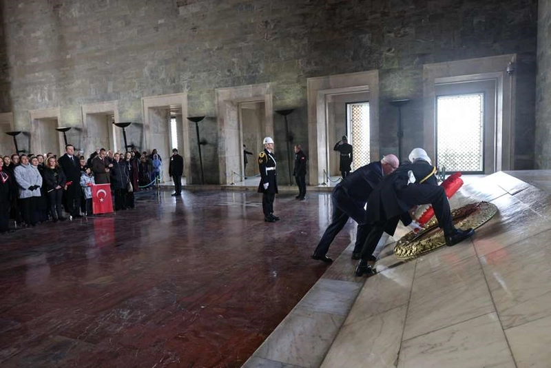 Anıtkabir'de gerçekleştirilen resmi törende, heyet Aslanlı Yol'dan yürüyerek mozoleye ulaştı. Odunpazarı Belediye Başkanı Kazım Kurt, Türk bayrağının renklerindeki çelengi mozoleye bıraktı. Ardından saygı duruşunda bulunuldu.