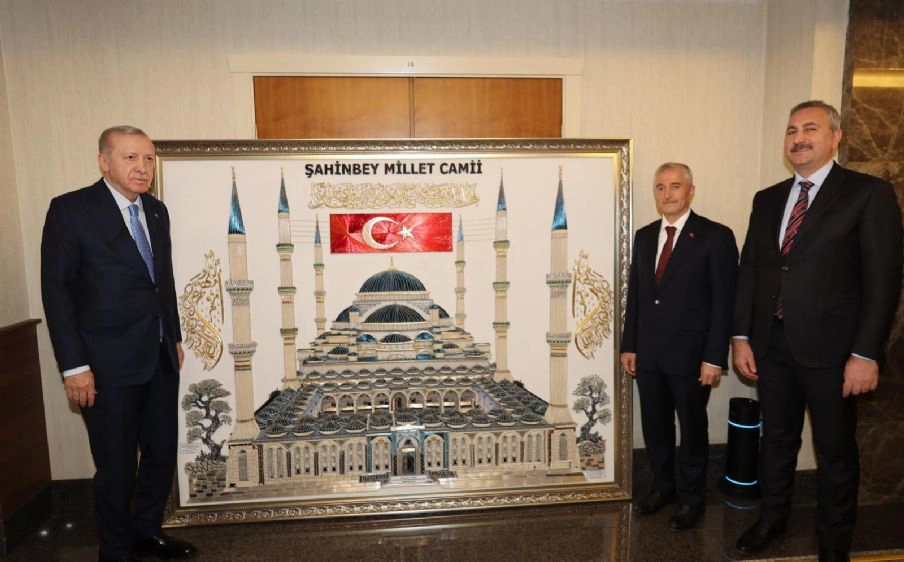 GÜNDEM HaberleriŞahinbey Millet Camii Filografi Tablosu Cumhurbaşkanı Erdoğan'a Takdim Edildi