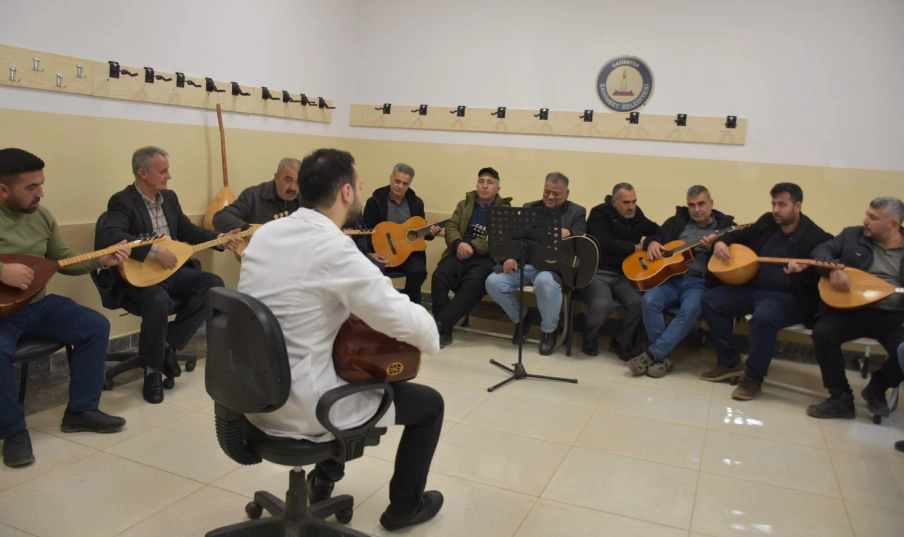 Şahinbey Belediyesi’ne bağlı Burç Sosyal Tesis’inde çiftçiler, boş vakitlerini tesisteki müzik kursuna gelerek değerlendiriyor.