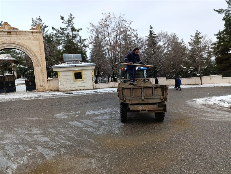 Ekipler, günün ilk ışıklarıyla birlikte sahaya çıkarak gece mesaisine de devam ediyor. Tuzlama ve solüsyon uygulamalarının yanı sıra kaldırım ve yaya yollarında temizlik çalışmaları titizlikle gerçekleştiriliyor.