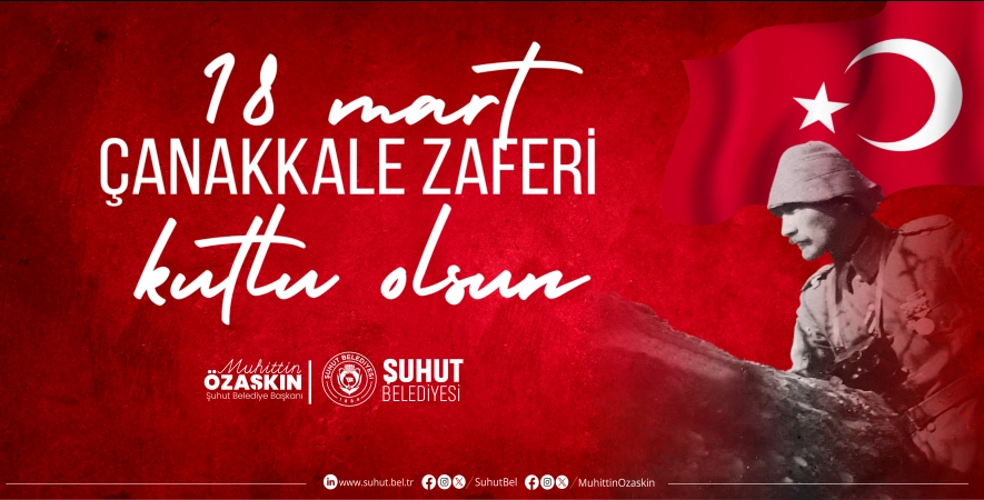 Şuhut Belediye Başkanı Muhittin Özaşkın, 18 Mart Çanakkale Zaferi ve Şehitleri Anma Günü’nün 111. yıl dönümü dolayısıyla bir mesaj yayımladı.