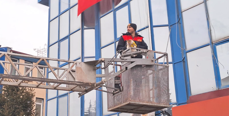 İhbarın ardından olay yerine intikal eden itfaiye ekipleri, kedinin bulunduğu noktayı tespit ederek kurtarma çalışması başlattı. Zorlu bir noktada mahsur kalan kedi için gerekli güvenlik önlemleri alındı ve ekipler kontrollü bir müdahalede bulundu.