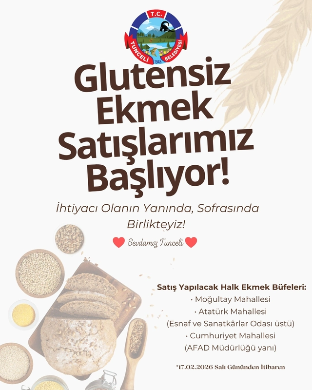 Tunceli Belediyesi, çölyak hastaları ve gluten hassasiyeti olan vatandaşlar için glutensiz ekmeği maliyet fiyatına satışa sundu.