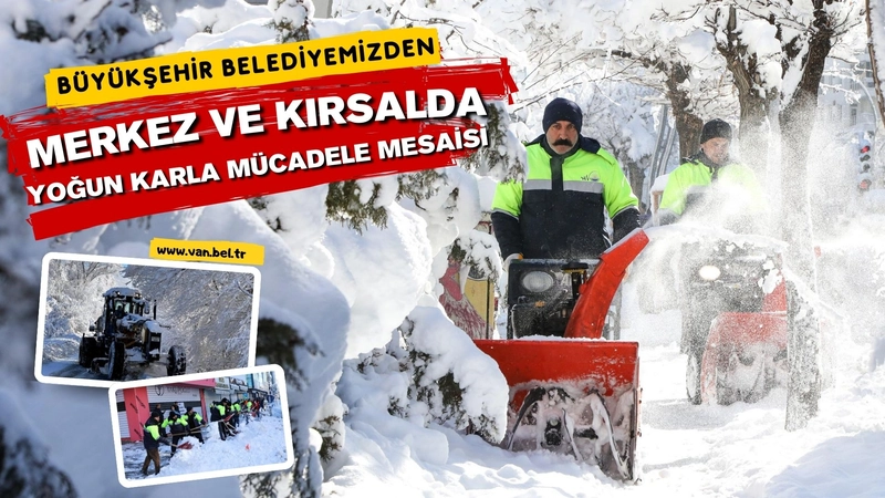Van Büyükşehir Belediyesi, etkili olan kar yağışının ardından kent genelinde karla mücadele çalışmalarını aralıksız sürdürüyor. Kent merkezinde ana arterler başta olmak üzere cadde ve sokaklarda kar küreme, tuzlama ve temizlik çalışmaları yürütülürken, ulaşımın aksamaması için ekipler gün boyu sahada görev yapıyor.