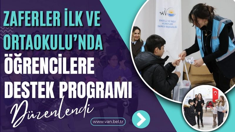Van Büyükşehir Belediyesi, Zaferler İlk ve Ortaokulu'nda öğrencilere yönelik kişisel gelişim setleri, kırtasiye malzemeleri ve eğitici oyunlar dağıttı. Program, müzik dinletisi ile renklendi.