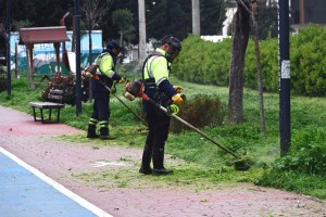 Temizlik İşleri Müdürlüğü Park ve Bahçeler Birimi ekipleri, Adnan Menderes Mahallesi’ndeki bisiklet ve yürüyüş yolu ile çevredeki parklarda çim biçme ve temizlik çalışmalarını yürütüyor.