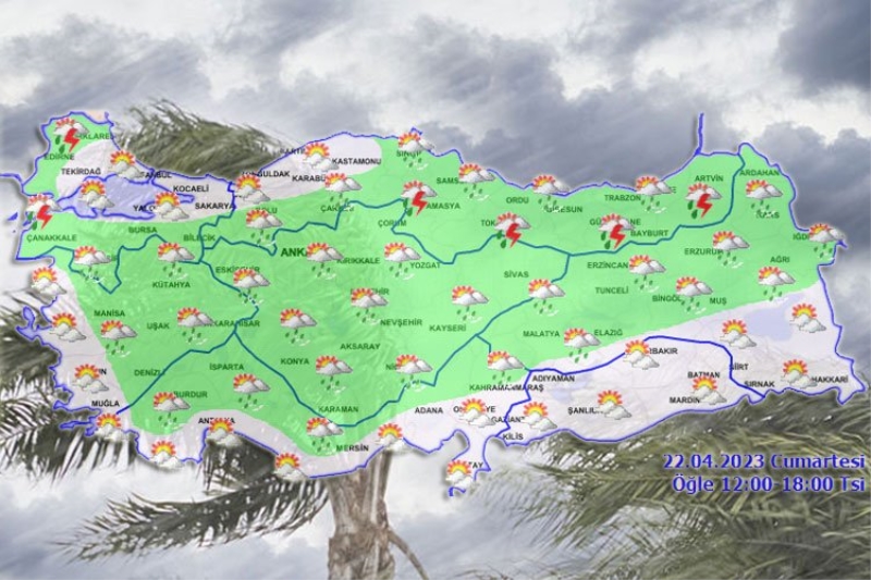 Meteoroloji Genel Müdürlüğü, yayımladığı 22 Nisan Cumartesi gününe ait hava durumu raporuna göre deprem bölgesindeki 11 ilde kuvvetli sağanak bekleniyor.