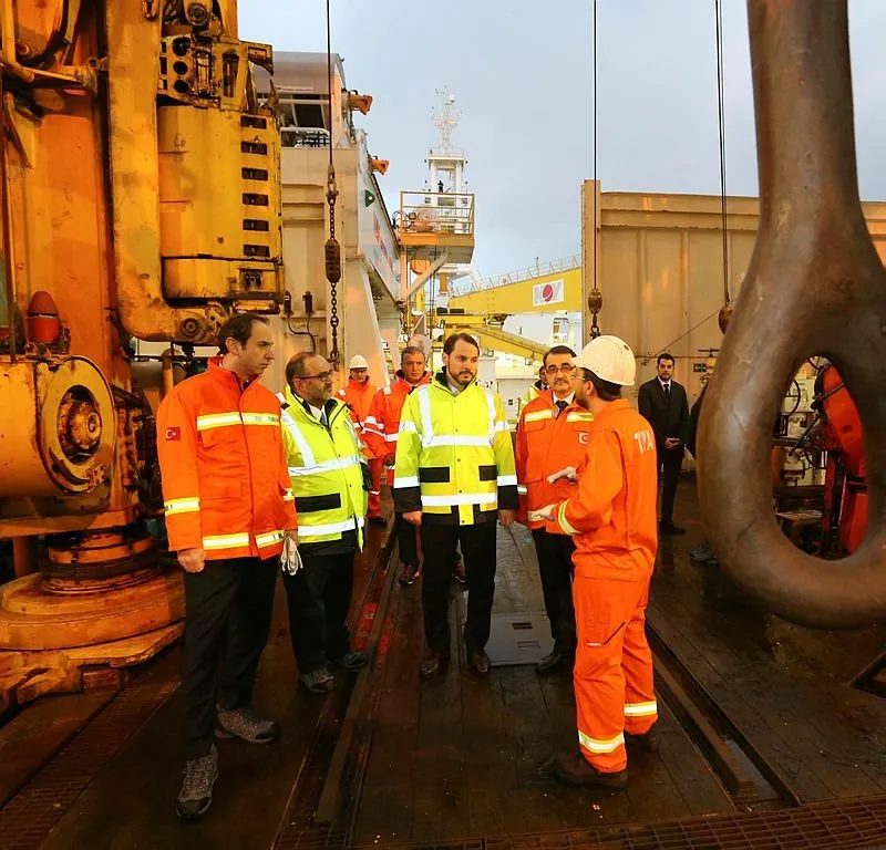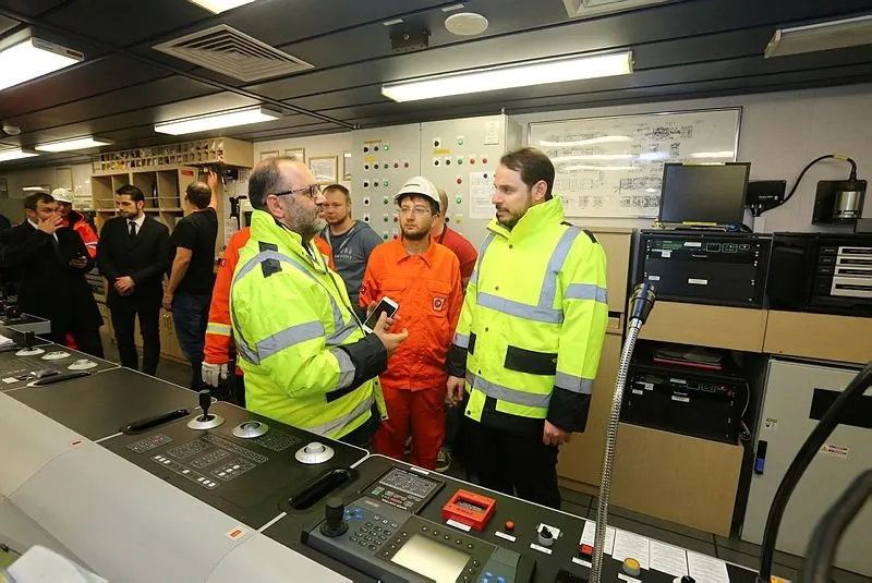 BAKAN BERAT ALBAYRAK, TÜRKİYE?NİN İLK SONDAJ GEMİSİNİ İNCELEDİ Her yılsonu, sektörün bir firmasında yeni yıla girdiklerini hatırlatan Bakan Berat Albayrak, "Bu yıl Enerji ve Tabii Kaynaklar Bakanlığı açısından rekorların yılı oldu. Türkiye enerji tarihi açasından milat olan, 2017 yılında sözünü verdiğimiz ve yıl bitmeden ülkemize ulaşan, sektörün en büyüğü, son teknoloji gemilerinden, ülkemizin ilk sondaj gemisinde yeni yıla giriyoruz. 230 metre uzunluğunda, 36 metre genişliğinde, dünyanın en gelişmiş sondaj gemilerinden bir tanesi. Yeni yıla buradaki arkadaşlar ile girelim istedik" dedi.