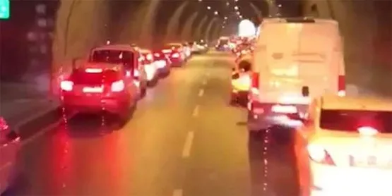 Tüneldeki diğer araçların sürücüleri, itfaiyenin geldiğini fark ederek Avrupa`da sıklıkla kullanılan "fermuar sistemi" ile yol verdi. İtfaiye de kendisine açılan kısımdan yoluna devam etti.