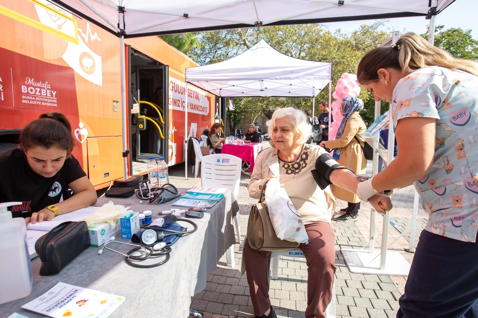 BURSA (İGFA) - Bursa Büyükşehir Belediyesi, 1-31 Ekim Meme Kanseri Farkındalık Ayı'nda çeşitli etkinliklerle halk sağlığına dikkat çekmeye devam ediyor. Sağlık İşleri Dairesi Başkanlığı Halk Sağlığı ve Sağlıklı Yaşam Şube Müdürlüğü tarafından Orhangazi Parkı'nda düzenlenen programda, İstanbul Tıp Fakültesi'nden Genel Cerrahi ve Meme Cerrahisi Uzmanı Doç. Dr. Selman Emiroğlu tarafından Sağlık Otobüsü içerisinde kadınlara ücretsiz muayene yapıldı. Alanda ücretsiz şeker ve tansiyon ölçümleri de yapan Büyükşehir Belediyesi hekimleri, vatandaşlara erken teşhis konusunda bilgilendirme broşürleri dağıttı.