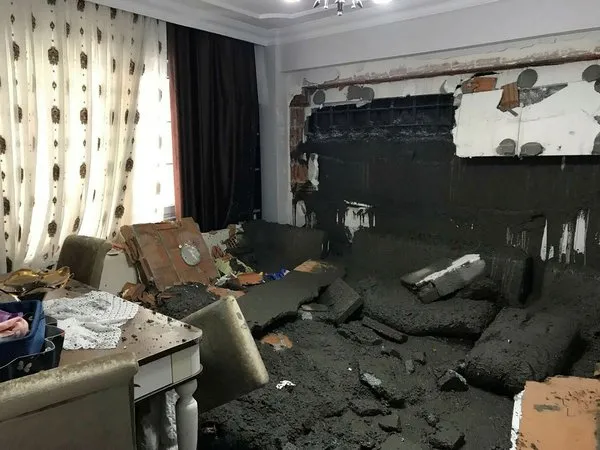 İstanbul`un Eyüp ilçesi Yeşilpınar Mahallesi, Hacı Hüseyin Sokak`ta inşaat halindeki binanın ikinci katına beton döküldüğü sırada, bitişikteki binanın duvarı yıkıldı ve buradaki evin salonuna beton doldu.