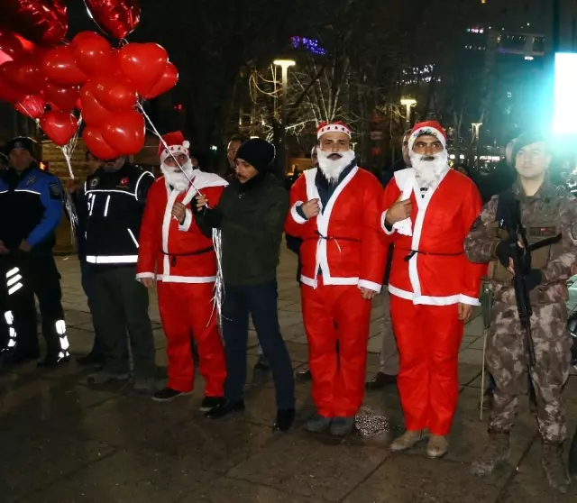EMNİYET GENİŞ GÜVENLİK ÖNLEMLERİ ALDI Binlerce kişinin toplandığı Kızılay`da Ankara Emniyeti tarafından geniş güvenlik önlemleri alınırken, yeni yıla Kızılay`da girmek isteyen Ankaralılar, meydanı doldurdu. Yabancıların da yoğun ilgi gösterdiği Kızılay Meydanı`nda geniş güvenlik tedbirleri alan Ankara polisi, trafiğe kapalı meydana girmek isteyenleri oluşturulan arama noktalarından alıyor. Olası olumsuzluklara karşı kalabalık arasında Noel Baba kıyafetli ve baloncu görünümlü polisler görev yapıyor.