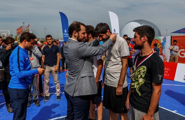 Aynı etkinlik alanında 11 Mayıs`ta başlayacak olan Etnospor Kültür Festivali etkinlik alanını da gezen Albayrak, mini futbol sahasında kaleye şut çekti. Ardından, festival kapsamında düzenlenen basketbol turnuvasında dereceye giren genç sporculara madalya ve kupalarını veren Albayrak, potaya atış yaptı.