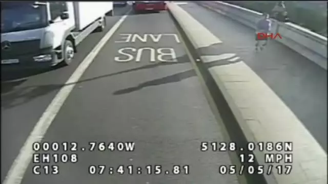 Londra`da sabah saatlerinde koşuya çıkan adam, koşu yaptığı sırada karşısından yürüyerek gelen kadını yolun ortasına fırlattı. O dehşet verici anlar araç kamerası tarafından saniye saniye görüntülendi.