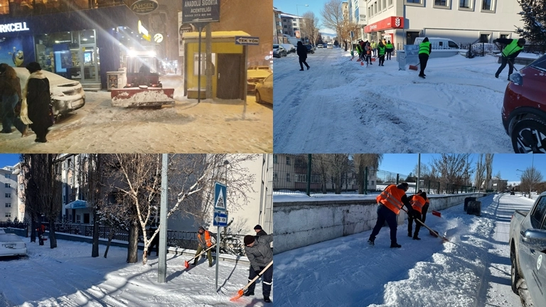 Belediye Başkanı Faruk Demir'in talimatıyla hareket eden ekipler, iş makineleri ve karla mücadele personeli ile şehrin her noktasında vatandaşların ve sürücülerin sorun yaşamaması için kesintisiz çalışma yürütüyor.