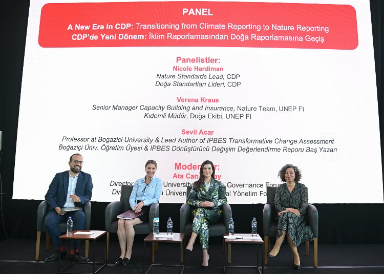 Panelde son yıllardaki gelişmeler ışığında, kurumsal raporlama söz konusu olduğunda gezegenin bütün sınırlarını kapsayacak şekilde doğa temelli bir raporlama yapmanın önemine vurgu yapıldı. Nicole Hardiman, önümüzdeki döneminin şekillendirilmesinde CDP’nin nasıl bir rol üstlendiğine odaklanarak bu geçişin şirketler için ne ifade ettiğini açıkladı. Verena Kraus ise finans kuruluşlarının doğayı kendi iş yapış stratejilerine ve karar alma süreçlerine nasıl entegre ettiğine değindi. Sevil Acar, IPBES’in değerlendirmelerine dayanarak, şirketlerin doğayla olan ilişkisine ve bu ilişkinin doğa üzerindeki etkilerine odaklandı.